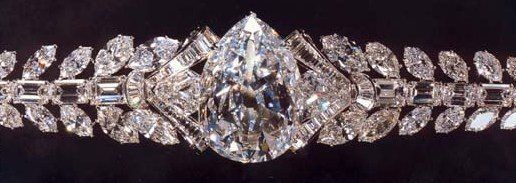 A total of 69.42 carats, this pear-shaped diamond was sold at auction in 1969 with the understanding that it could be named by the buyer. Cartier of New York successfully bid for it and immediately christened it "Cartier". However, the next day Richard Burton bought the stone for Elizabeth Taylor for an undisclosed sum, renaming it the "Taylor-Burton". It made its debut at a charity ball in Monaco in mid November where Miss Taylor wore it as a pendant. In 1978, Elizabeth Taylor announced that she was putting it up for sale and planned to use part of the proceeds to build a hospital in Botswana. Just to inspect the diamond, prospective buyers had to pay $2,500 to cover the cost of showing it. In June 1979 it was sold for nearly $3 million and was last reported to be in Saudi Arabia.